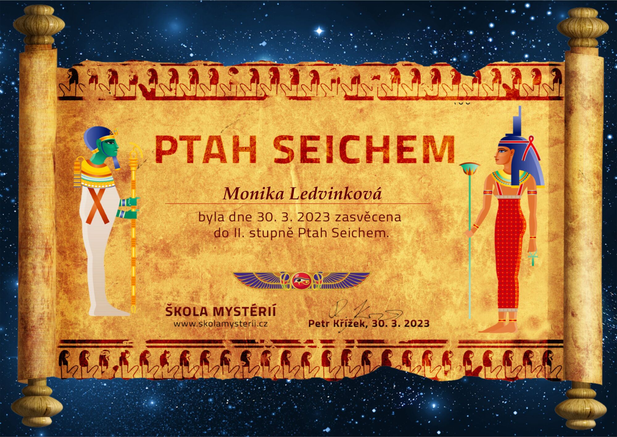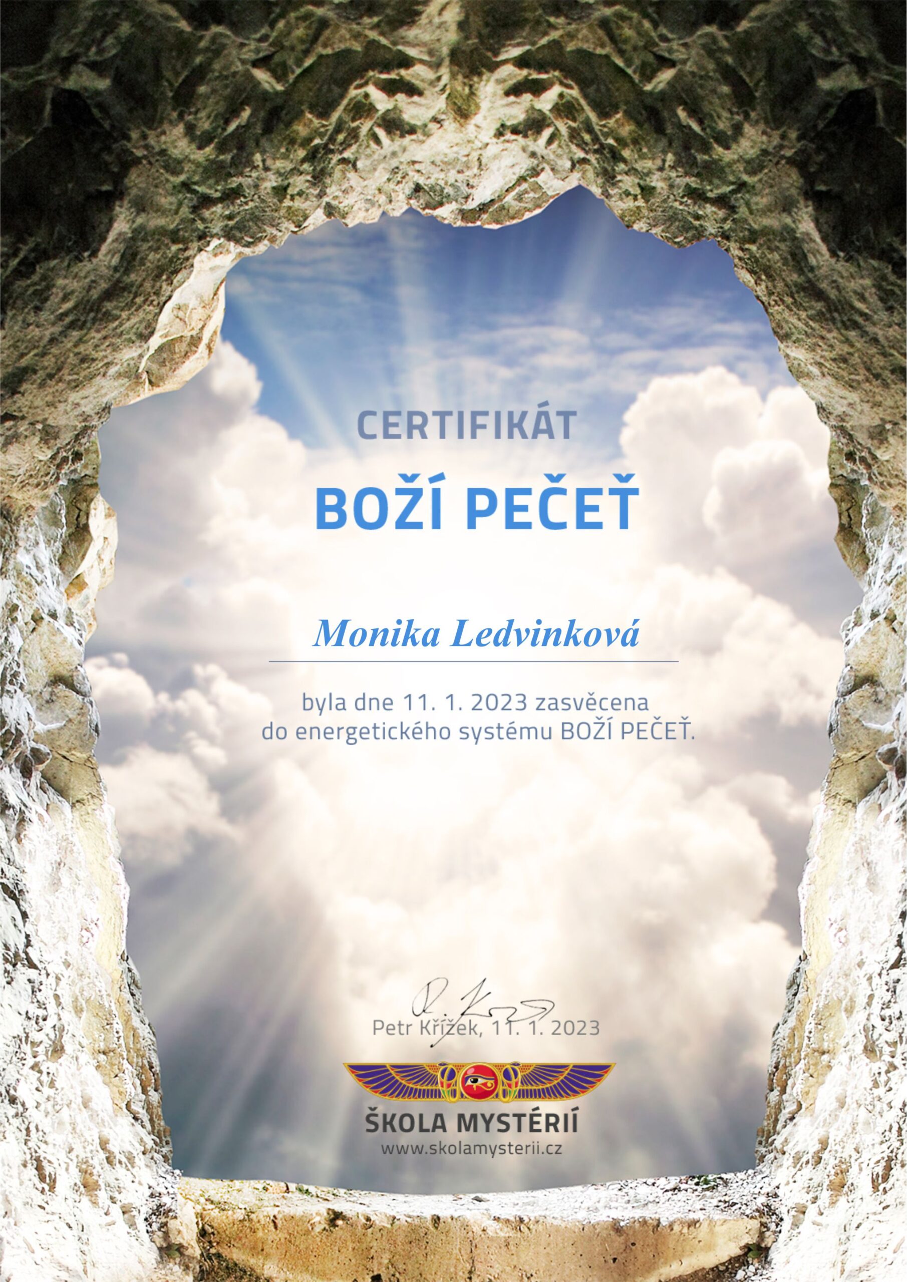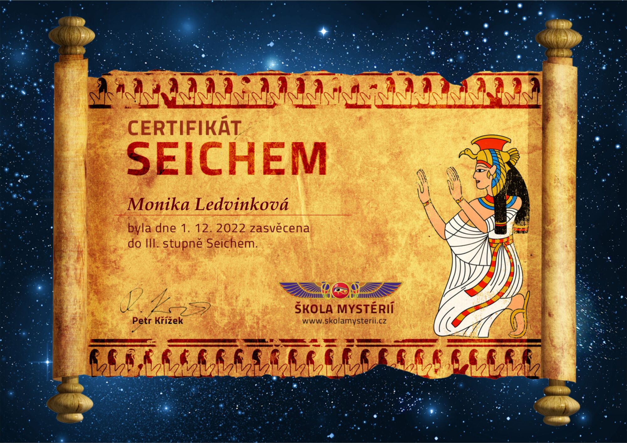 Získala jsem certifikáty v oblasti seberozvoje dr. Joe Dispenzy - Poznej sílu své mysli, a Egyptských mystérií I. a II., se zasvěcením do energetických systémů Seichem I. až III.